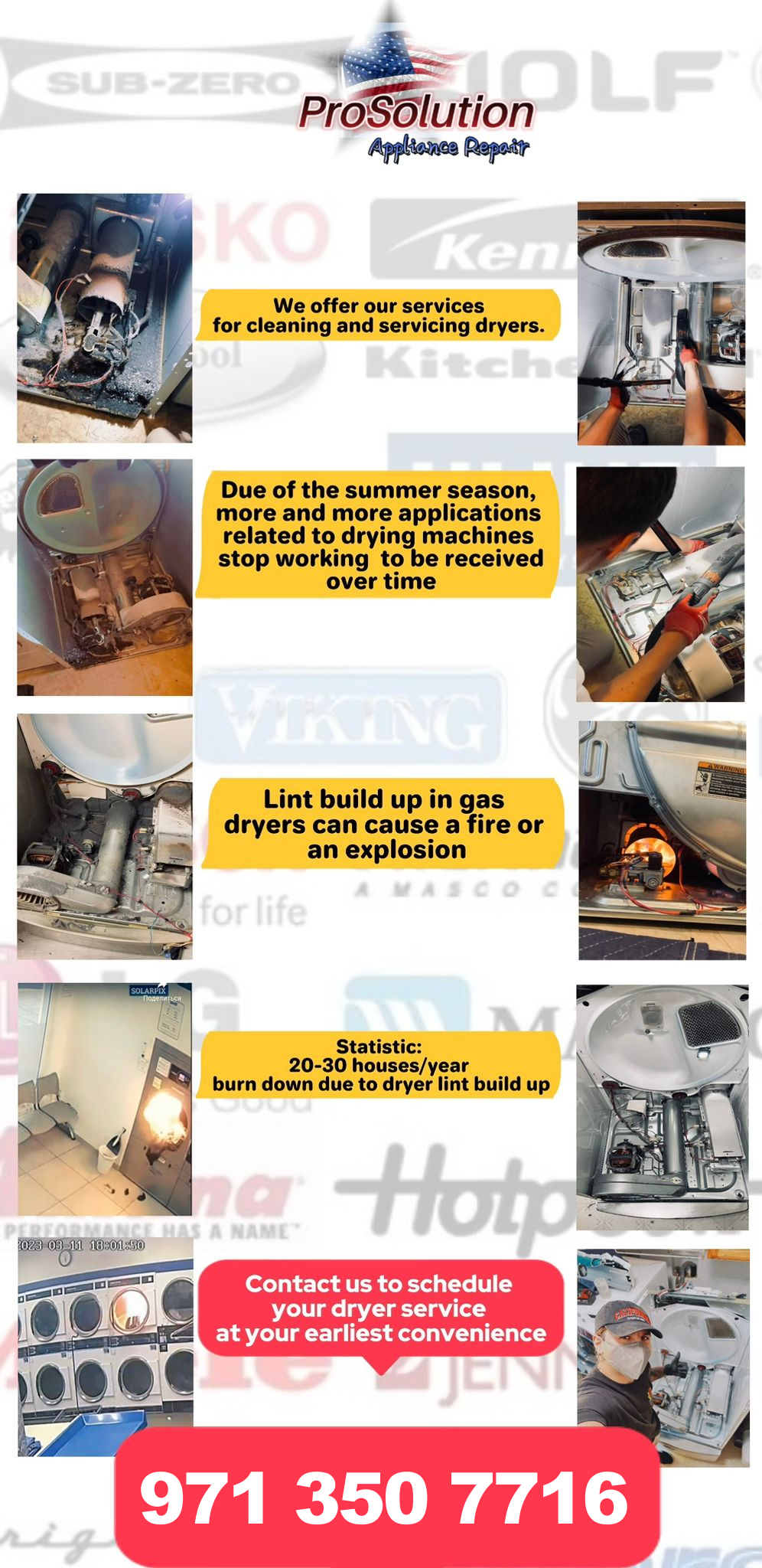 We guarantee that the repair will be completed with high quality and professionalism. We provide free repair consultations. The cost of initial diagnostic service call is $115 for residential customers and $150 for commercial customers for the first appliance, and $50 for each next appliance diagnosed in the same visit